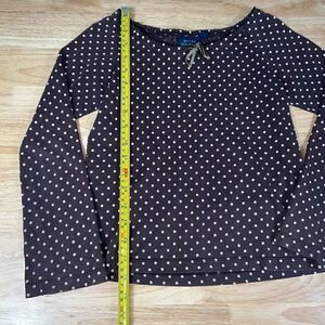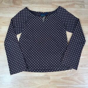 Mini Boden, Brown Polka Dot Long Sleeve T-Shirt, Bow Detail, Size 9-10Y