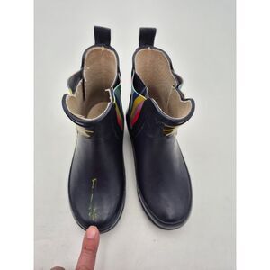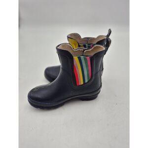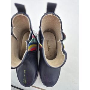 Mini Boden Girls Size 27 Navy Colorful Rainbow Stripe Leather Chelsea Rain Boots