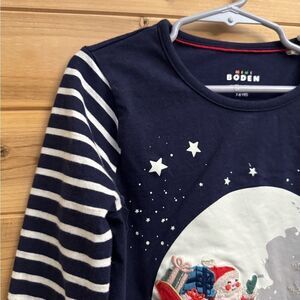 Mini Boden Size 7/8 Christmas Santa Sleigh Reindeer Long Sleeve Tee Unisex