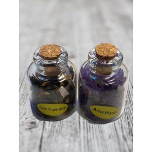 Bottles Set Healing Crystals Stones Chip Tumbled Gem Reiki Wicca Witchcraft Supplies Kit Set of 9 mini glass wishing bottles with assorted tumbled gemstone chips healing energy reiki chakra stone collection.