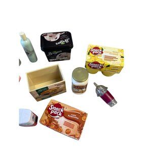This collection features a variety of miniature food and drink items, ideal for enhancing dollhouse displays or imaginative play. Each piece replicates real-life products, offering a touch of authenticity to any miniature setting. Suitable for children or collectors, these items provide a detailed and engaging experience.