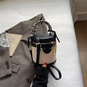 This structured cylinder purse maintains its crisp shape, measuring a convenient 5.5" (L) x 4.7" (W) x 6.3" (H) - the perfect small handbag for essentials like phone, cardholder, keys.