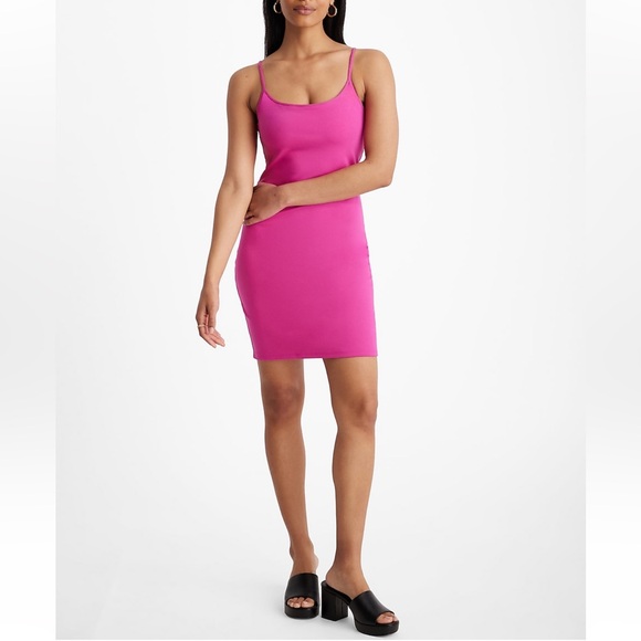 A quality double lined mini dress with adjustable spaghetti straps and a built-in shelf bra.