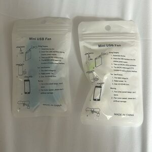 Compact mini USB fan. Easy to assemble and use. Perfect for on-the-go cooling. Compatible with iPhones. Set of 2.
