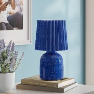 Mini Printed Ceramic Base Table Lamp with Printed Pleated Shade.