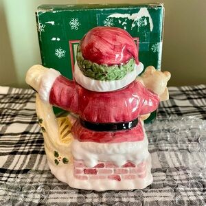 Mini Santa Teapot Tea Pot Holding Bear and Toy Gift Bag Vintage 1990's