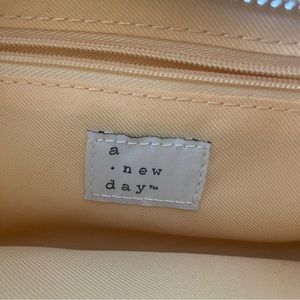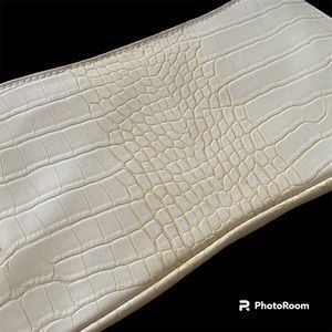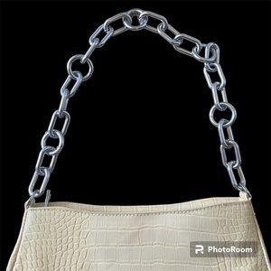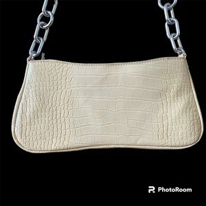 This large chained mini purse is as good as new! Never used but such a cute purse! NWOT! It has a small pocket inside and can fit many things! The color of the bag is beige or cream! The bag itself is a faux crocodile or alligator skin look. Comment for any extra information! 🔮🔮🔮🔮🔮