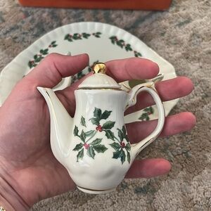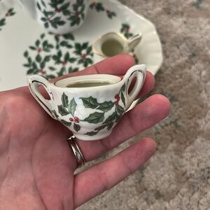 Mini Christmas partial Tea Set Baum Brothers formalities holly berries