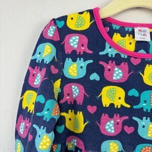 * Features: 100% cotton, round neck, long sleeves, short length, navy blue with multicolored elephant print