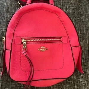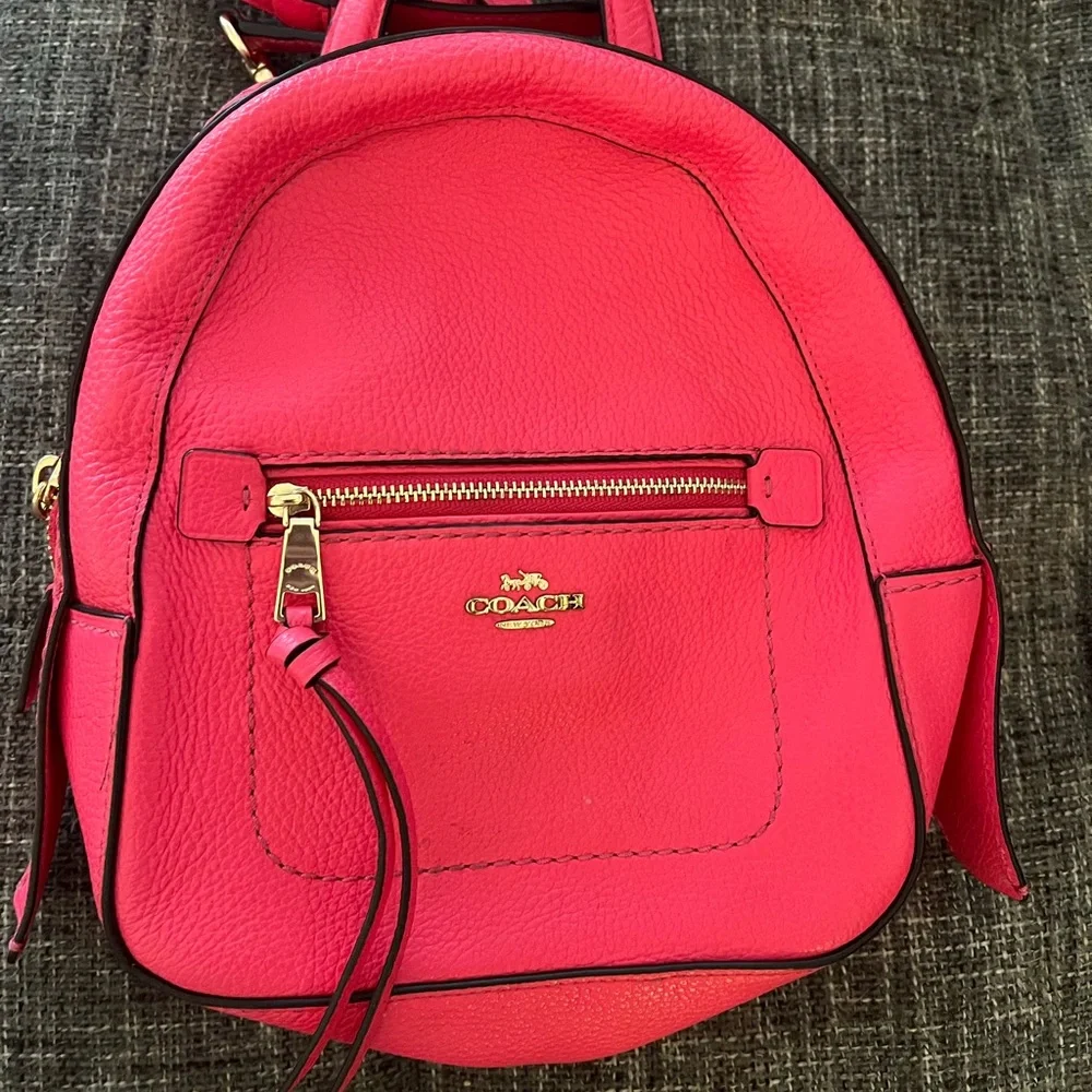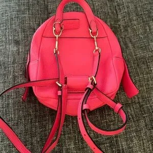 bright pink coach mini backpack. Has adjustable straps and they come off with a buckle. Gold hardware.