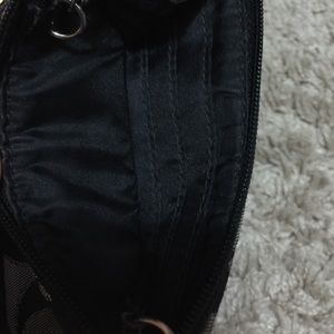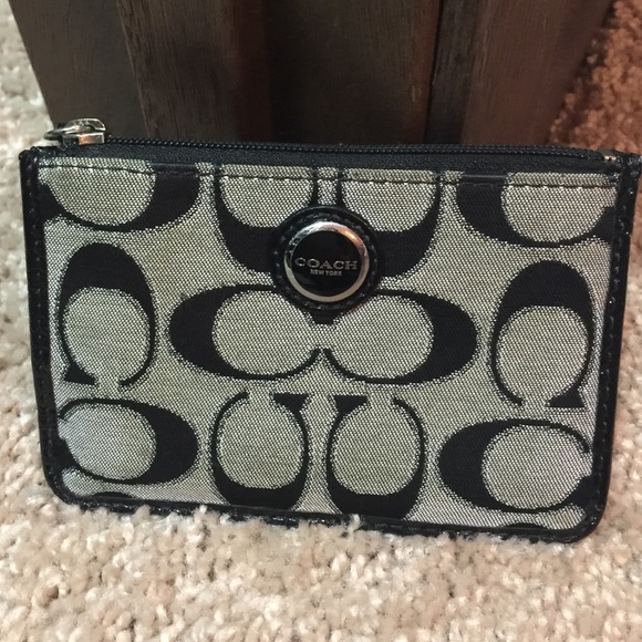 Coach Poppy Metallic Signature Mini Wallet. Color: Silver/Moonlight. One pocket in the back and 3 pockets on the inside. Purchased from the Coach Store.