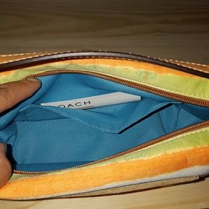Vibrant multicolored verticle striped Coach purse. In wonderful condition. Great mini bag for a brunch or vacation.