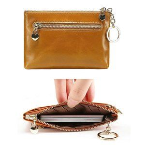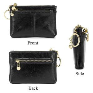 Mini Coin Purse W/ Key Ring Triple Zipper Fashion, PU Leather Card Holder Wallet