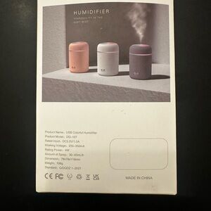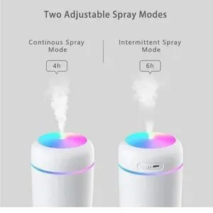 White humidifier with colorful LED light. Perfect for home or office. Mini humidifier It has two spray modes and an automatic shut-off function. Fill it with water, in continuous mode it can run for 4 hours, in intermittent mode it can run after 6 hours. The humidifier will automatically turn off when there is no water, so you can use it at night without worrying about damaging the humidifier, Please Remember do not add the heat water in the humidifier.