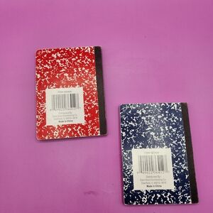 Set of two miniature composition notebooks. One red, one blue.