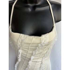 Mini Cream Ruffle Dress Halter Neck Lace Size XS Romantic Feminine Date Flirty