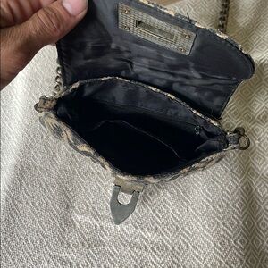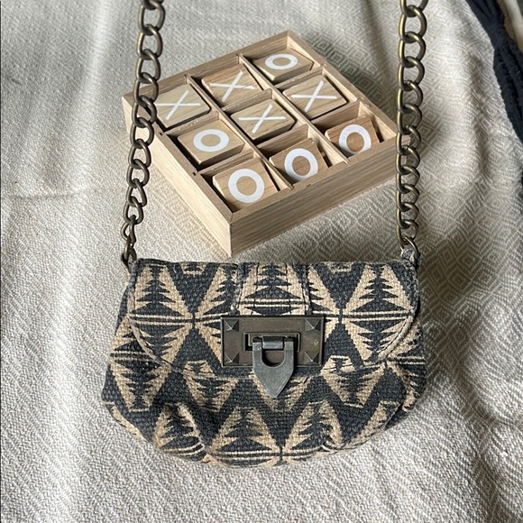 Mini Cross Body Bag Aztec Pattern (Black & Tan) w/ Bronze very much used and loved, good little piece to bring along for events where other bags might not be feasible
