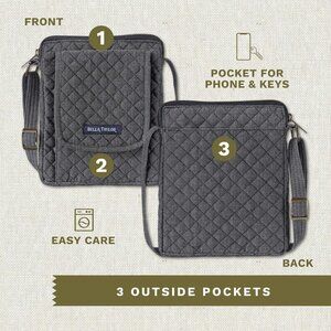 Product details Fabric type Cotton Origin Imported Closure type Zipper Lining Cotton About this item Midnight Navy Denim: A dark blue denim exterior; vintage inspired blue floral interior; lined in a coordinating ditsy navy floral print Small Cross Body Purse: 6.5 wide, 8 high, and 0.75 deep; carry your glasses and shopping list in the main zippered compartment; keep your or keys handy in the separate middle zip pocket Built In Wallet: Front flap pocket; clear ID slot; carry up to 6 credit or debit cards; magnetic closure Adjustable Strap: Shoulder drop ranging from 13" to 27", wear over the shoulder, or as a hands-free small crossbody purse Made to last with cotton fabric and batting; diamond quilting; machine