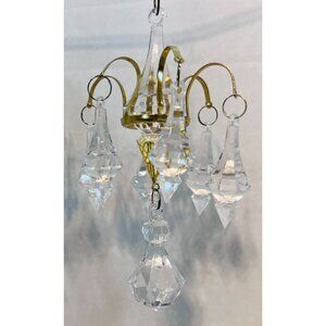 Mini Crystal Chandelier Ornament brasstone pointed faceted Christmas windows Bar