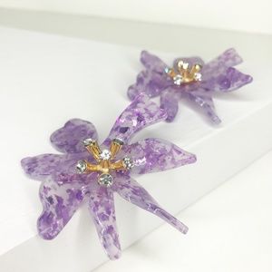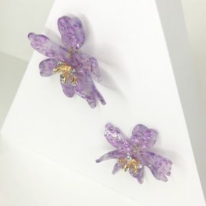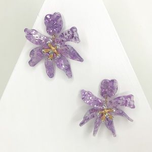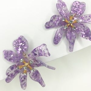 Lovely, light purple abstract lily earrings adorn your ears for a garden inspired finish. Push-back closure.