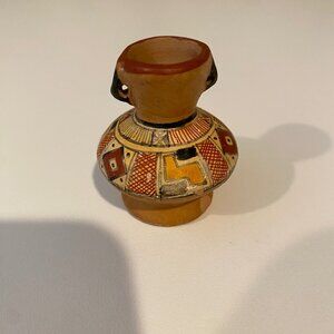 Mini Cusco Peruvian Inca Style Clay Vase Replica 2” Hand Painted
