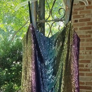 Mini Dark Rainbow Gradient Sequin Shift Dress NWOT