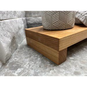 This maple wood riser is a hand crafted, farmhouse style, with distinct wood features. Use this to display candles, soaps, lotions, small pots and much much much more. This versatile design blends with any interior style. The wood riser will have slight imperfections and colors based on the grain of the wood, it is not uncommon for some of the areas to be darker or lighter than pictured.
