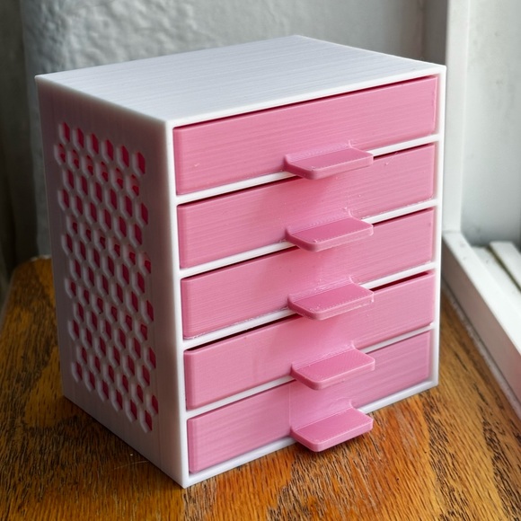 3D printed mini drawers perfect for keeping small items. Can be used for office, desktop, art supplies, jewelry, sewing items, etc.