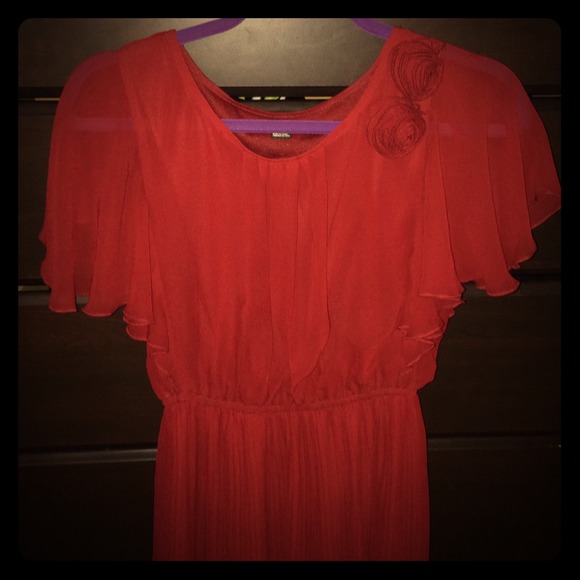 Cute burgundy mini dress. Could also be worn as a top with black tights.