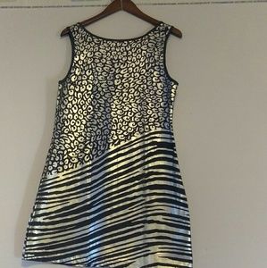 Perfect condition. Exact item as show. No tips stains or tears. Silver and Gold Mini Dress