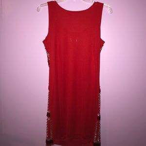 Mini dress, with low neck cut, sleeve less, front is covered with jewels, very elegant and perfect for parties and important events