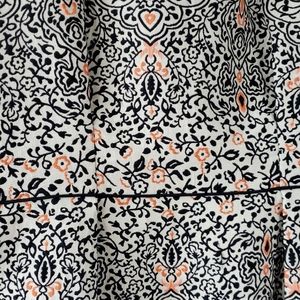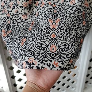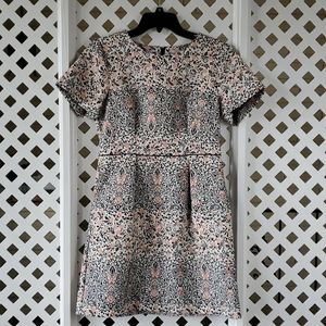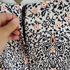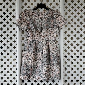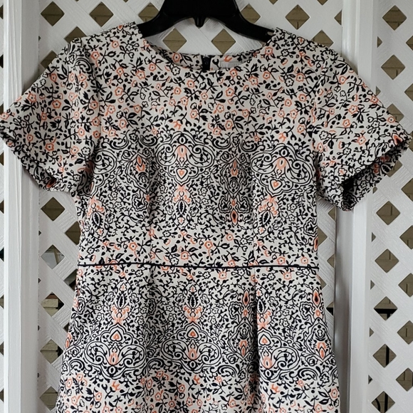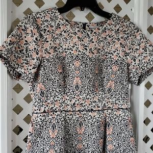 Features apricot and black embroidery, crew neck, two roomy pockets, black waist lining and black hidden long metal zipper. Perfect for formal outings/parties. High quality fabric. Like new.