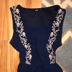 Navy, embroidery detail mini dress