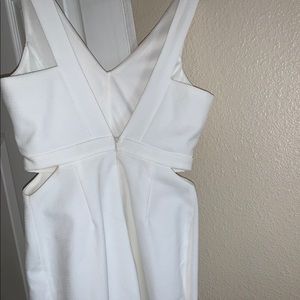 White mini dress with small cut outs on the side! Perfect for a wedding, dinner party or night time outings.