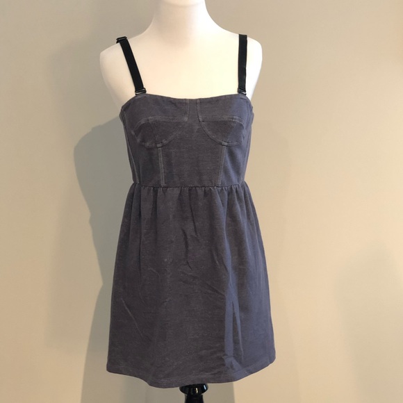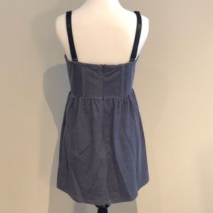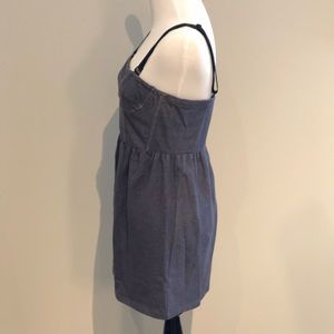 Super cute denim blue color mini dress with zip back closure, adjustable/removable thick straps, and bustier detail bodice.