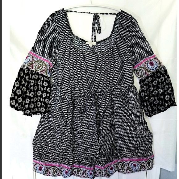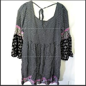 Mini bohemian dress with bell-shaped sleeves