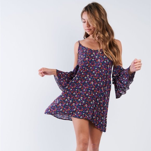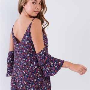 -adjustable cami straps, cold shoulder, nell sleeves, floral peint allover, unlined-