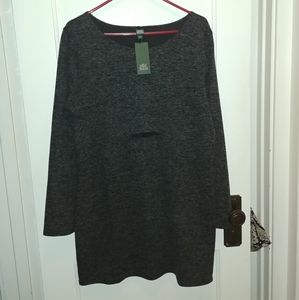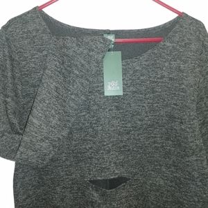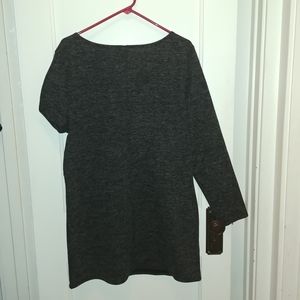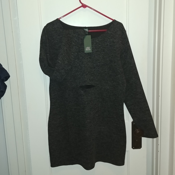 Black n Gray mini dress with fun whole at midrift. New with tag. Polyester material but looks and feels like a sweater dress.