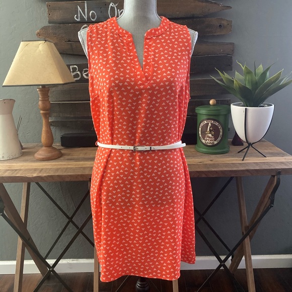Cute mini belted dress. The dress hasn’t been worn but the belt was used for another dress so it’s not in great shape. You can use different belts to this dress. Really cute for summer with sandals or sneakers.