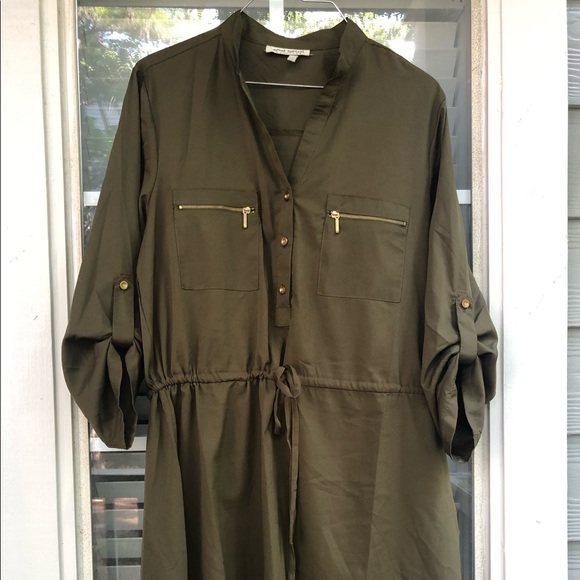 Very comfortable short v-neck gold buttons, adjustable sleeves and a draw string at the waistline🤩... Been worn once...