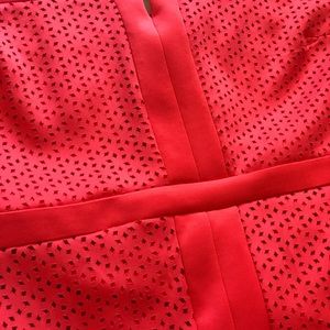 coral/red/orange colored cutout pattern dress. Great casual or dressed up. Very figure flattering stretchy fabric and hits a little above the knee. Never worn, like new.