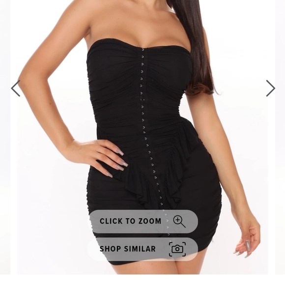 NWT. Fashion Nova ruched mini dress. Hook and eye closure goes down length of dress. Padded bra cups.