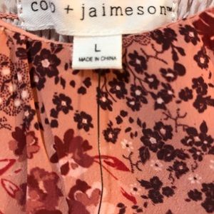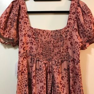 Pink burgundy floral dress. Little stretch on upper back with flowy bottom.