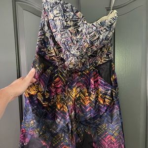 This dress is so cute. Perfect for vacation or a dinner date. Mini dress and POCKETS. Bust is slightly padded. Side zipper