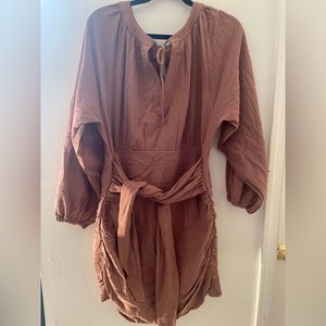 Mini Dress cotton fabric, very cute for any occasion. Has a little damage in the closing area, broke off while trying it on. All it needs is a little stitch. Never worn brand new. Color Strawberry Roan. Comes with extra button.