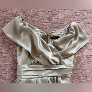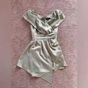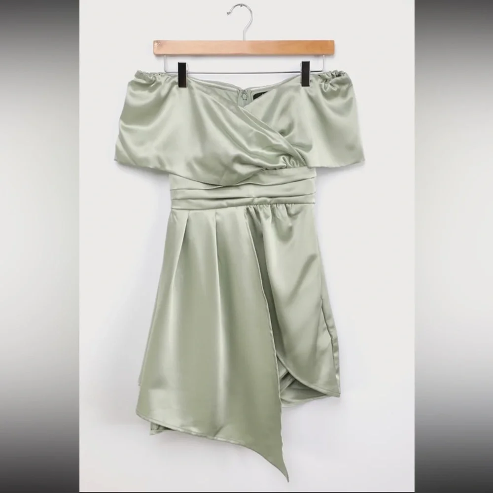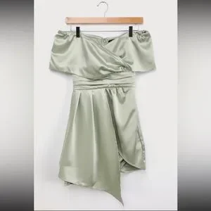 Sage Green satin off-the-shoulder mini dress