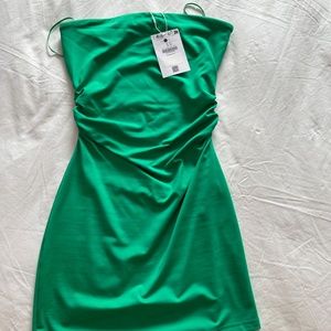 Super sexy dress. The material is stretch and super comfortable. Fits XS and small. I love it but I have another one similar to this one. Bought it in Barcelona so I couldn’t return it.