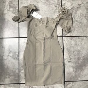 Stone dress featuring a puff sleeve design, a sweetheart neckline, bodycon fit mini dress in this dress essential