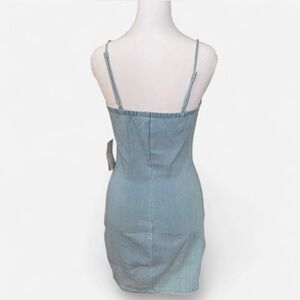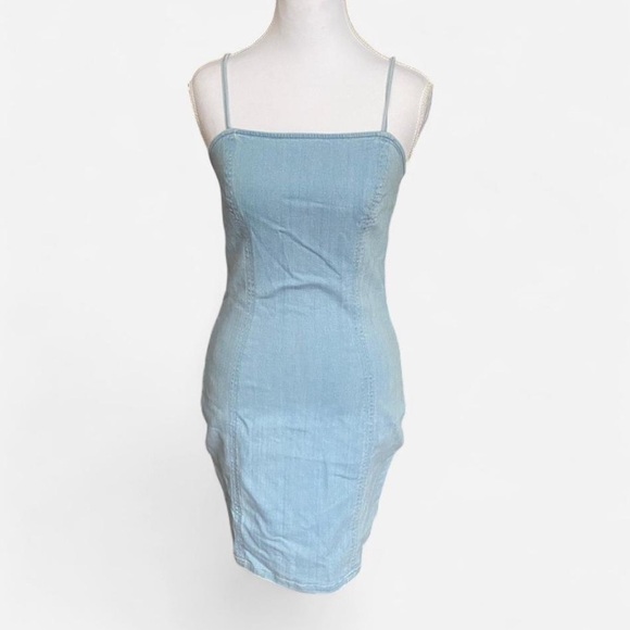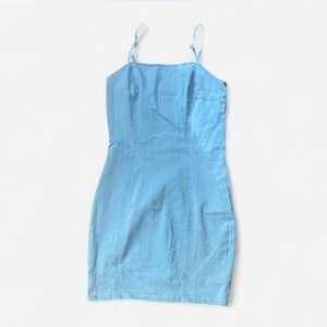 blue mini dress, bodycon dress, spaghetti strap dress, new with tags, summer dress, minimalist, fitted dress, denim look, going out dress, basic mini