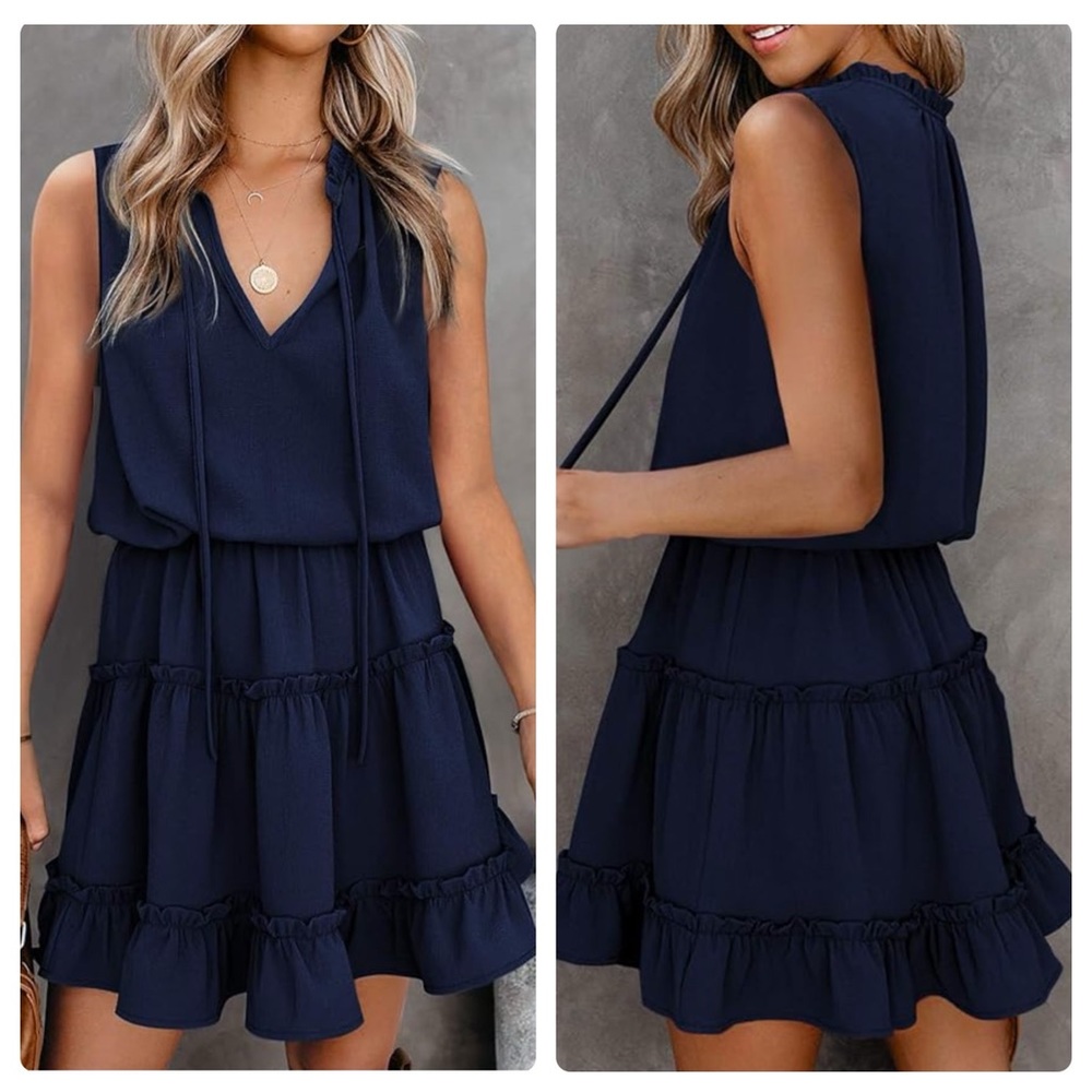 No brand navy blue ruffled flowy mini dress.